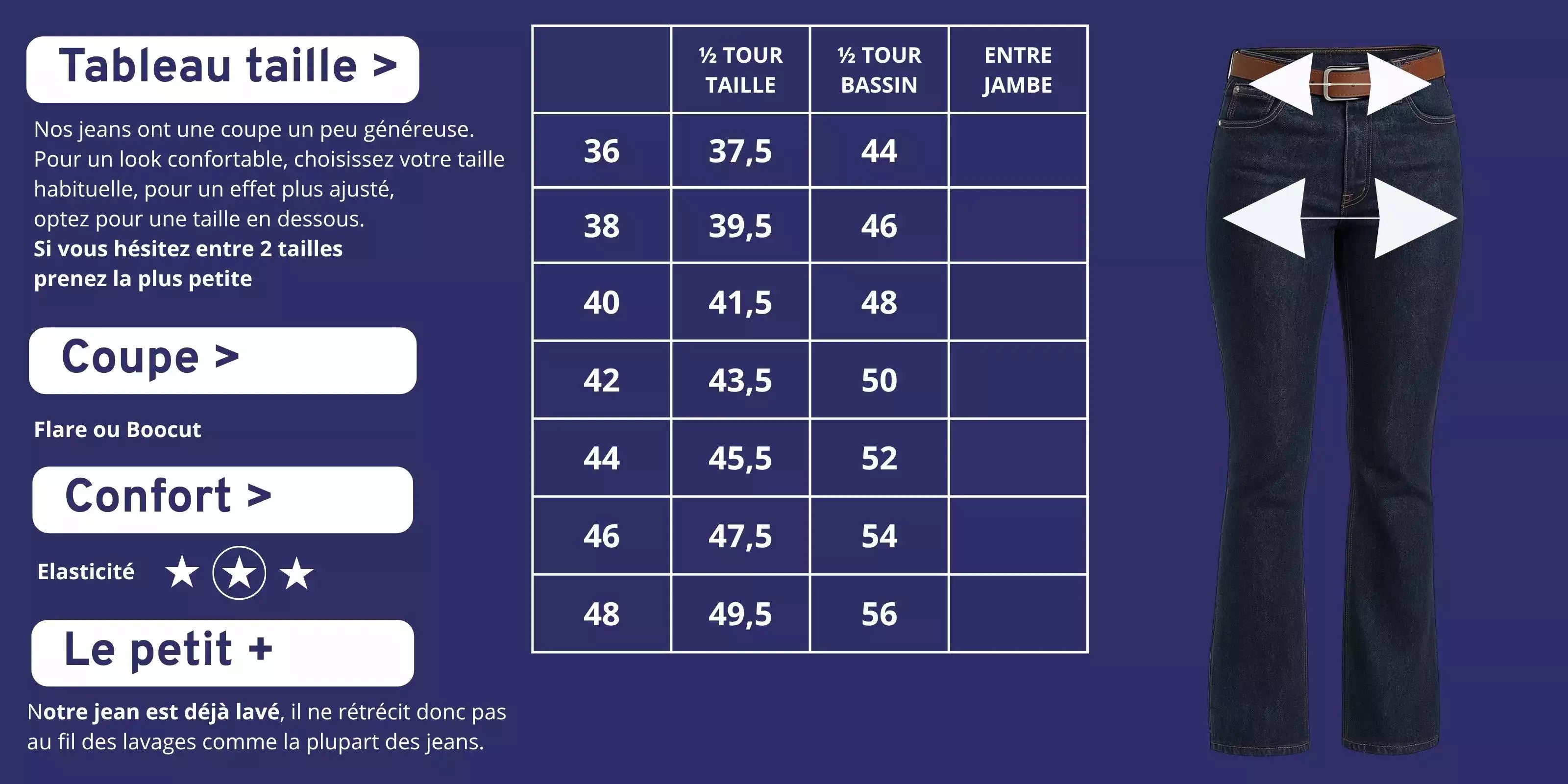 Nos jeans ont une coupe un peu généreuse.